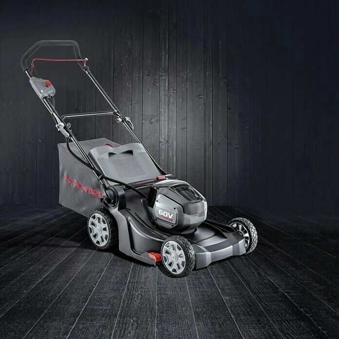 De Powerworks grasmaaier PD60LM46HPK4 is een betrouwbaar en krachtig apparaat dat volledig zonder brandstof of kabels werkt. De onderhoudsvrije borstelloze motor wordt aangedreven door een 60 V accu met een capaciteit van 4 Ah. Per acculading kan tot 800 m² gazon worden gemaaid. De oplaadtijd van deze krachtige accu is slechts 120 minuten, zodat je de maaier weer snel kunt gebruiken. De maaihoogte kan bij een maaibreedte van 46 cm centraal worden ingesteld in zeven standen tussen 25 en 80 mm. Het maaisel kan worden opgevangen in de royale mand, die voldoende ruimte biedt voor maximaal 55 liter maaisel, of het kan bij het mulchen worden versnipperd en verdeeld over het gazon. Daarnaast is de maaier uitgerust met een zijwaartse uitworp.