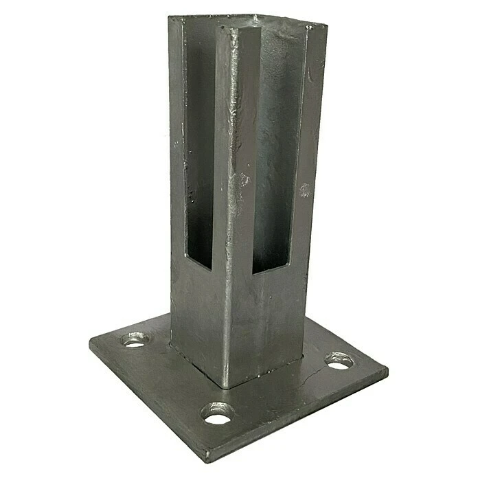 De grondplaat is ideaal voor het veilig verankeren van palen met een dikte van 50 x 50 mm op een rechte, harde ondergrond zoals beton of stenen tegels. Het is gemaakt van thermisch verzinkt metaal en wordt geleverd zonder schroeven.