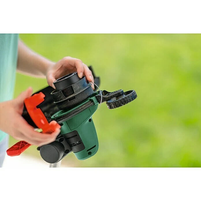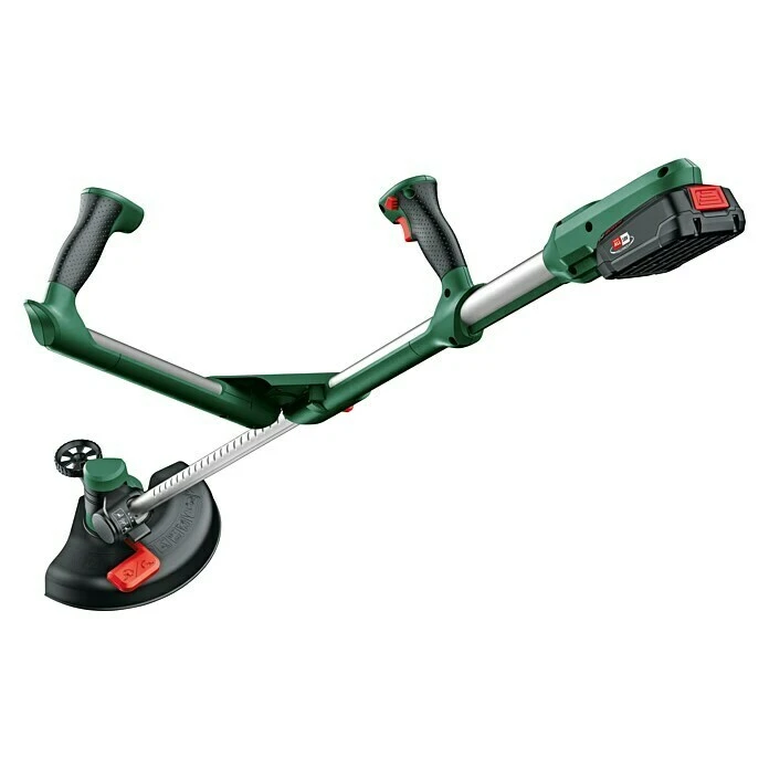 De draadloze grastrimmer UniversalGrassCut 18V-26 heeft een ergonomische V-vormige handgreep met telescopische hoogteverstelling voor comfortabel gebruik en een natuurlijke houding. De IntelliFEED-functie zorgt voor ongestoord werken dankzij de automatische draadaanvoer en je hoeft niet te bukken tijdens het tuinieren. Je schakelt eenvoudig over van trimmen naar kantenkanten door de flexibele kop te draaien via een voetpedaalknop. Bovendien kun je met de draaibare kop moeilijk bereikbare plekken trimmen. Gewasbescherming beschermt planten en bloemen bij kort snoeien. Of het nu gaat om boren, schoonmaken of tuinieren – met de 18 V POWER FOR ALL-accu van Bosch wisselt je snel en eenvoudig tussen verschillende gereedschappen.