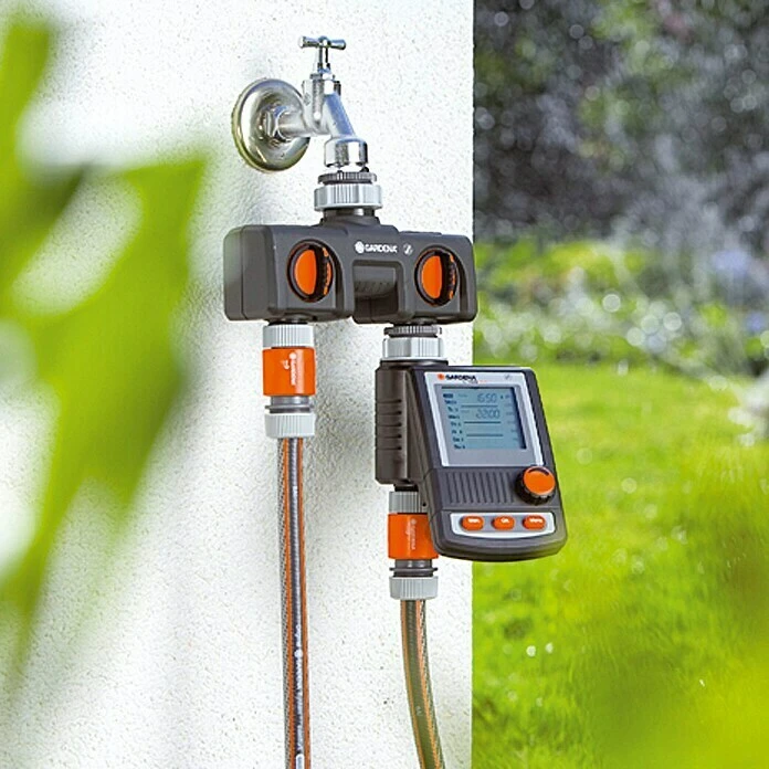 Met de GARDENA 2-wegverdeler kun je twee apparaten gelijktijdig aansluiten op een kraan. De uitgangen zijn traploos te regelen. Je kun twee besproeiingscomputers of bewateringsklokken aansluiten op de verdeler. De 2-wegverdeler kan met het Profi System kraanstuk worden omgebouwd tot het GARDENA Profi System. De GARDENA 2-wegverdeler past op kranen met 26,5 mm (3/4″) en 33,3 mm (1”) schroefdraad.