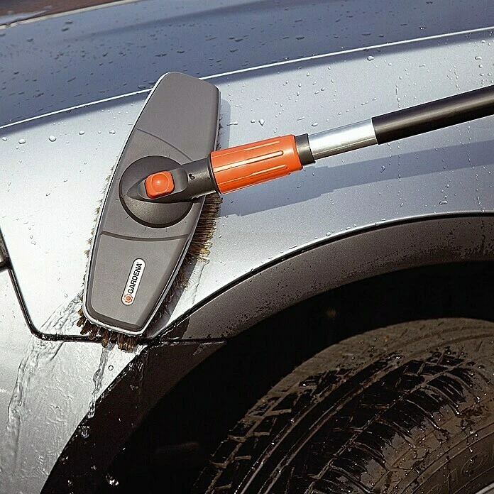 De GARDENA Clean System autowasset kan direct worden gebruikt en is geschikt voor het effectief reinigen van voertuigen en gevoelige oppervlakken zonder iets te beschadigen. De set omvat de GARDENA wasborstel, de GARDENA watersteel 90 en de biologisch afbreekbare GARDENA shampoo. Je kunt de borstel in stappen van 30 graden geheel rond draaien. Met deze borstel kun je zelfs moeilijk bereikbare plekken moeiteloos schoonmaken.