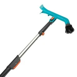 De GARDENA combisystem gootreiniger is ideaal voor het gemakkelijke leegmaken en reiningen van dakgoten. Stevige borstels aan de ene kant en twee hoogwaardige, kunststof schrapers aan de andere kant zorgen voor efficiënte reiniging. De draaggreep maakt het mogelijk om de gootreiniger zelfs zonder steel te gebruiken. Het is ook mogelijk om water te gebruiken tijdens het reinigen. Een tuinslang kan eenvoudig worden aangesloten dankzij de Original GARDENA System aansluiting. De werkhoek is eenvoudig instelbaar met een quick-lock hendel. 25 jaar garantie. De set bevat een hoogwaardige aluminium, telescopische combisystem steel. Deze is uitschuifbaar van 210 tot 390 centimeter en maakt het mogelijk de dakgoot te reiningen tot wel 6 meter hoog.