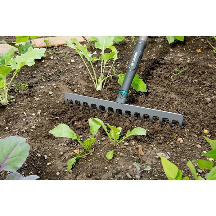De GARDENA NatureLine hark kan op verschillende manieren worden gebruikt voor het harken en egaliseren van bloembedden en voor grondbewerking. De hark heeft een werkbreedte van 36 cm (14 tanden), en de stevige tanden van kwaliteitsstaal zijn bestand tegen alle belastingen en maken effectief werken mogelijk. De gelakte steel van beukenhout (FSCยฎ-gecertificeerd) vormt een vaste en solide verbinding met de hark, geen gewiebel of kromtrekken. De garantieperiode bedraagt in totaal 10 jaar.