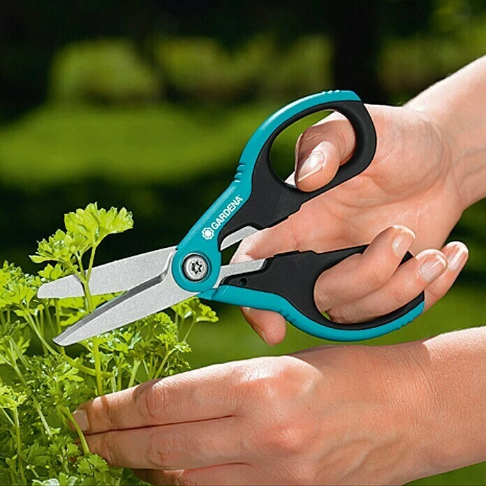 De GARDENA multifunctionele schaar is een comfortabele en handzame schaar. Hij is buitengewoon handig in keuken en tuin. Je kunt er moeiteloos bloemen, kruiden, touw, binddraad, karton en kunststof mee knippen. De speciaal geslepen bladen zijn van roestvrij staal. Door zijn ergonomische design en grepen met zachte componenten ligt deze schaar prettig in de hand. Hij is zowel voor links- als rechtshandigen geschikt en heeft een totale lengte van 180 mm.