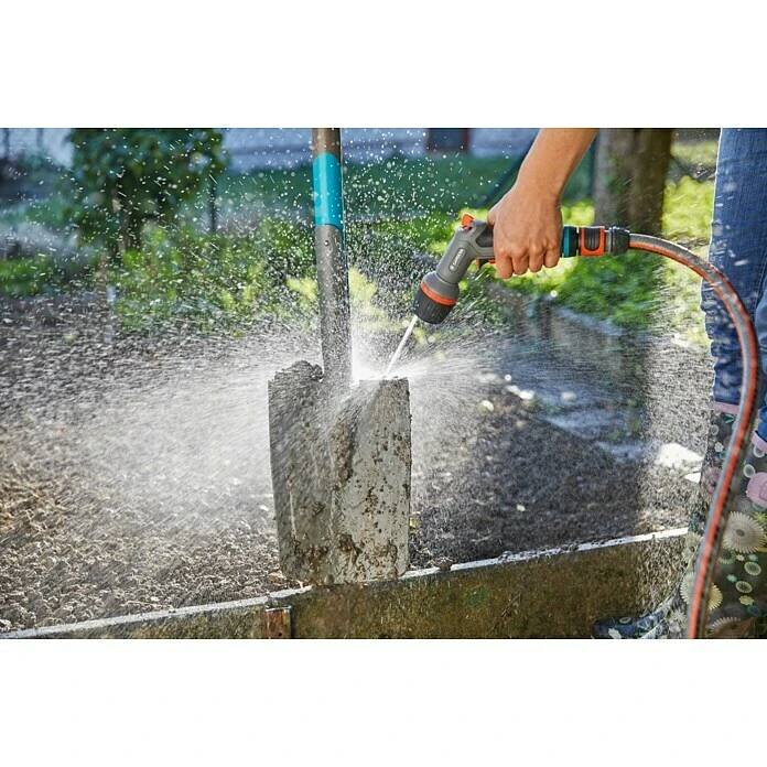 Het GARDENA Comfort reinigingspistool ecoPulseโข is geschikt voor zowel effectieve reiniging als voor besproeiing. De sproeier heeft de innovatieve ecoPulseโข straal. De oscillerende waterstraal is bijzonder effectief tijdens het reinigen van oppervlakken en bespaart tot 40% water in vergelijking met de standaard GARDENA harde straal. Drie andere spuitstanden (harde straal, vlakstraal en nevel) kunnen worden ingesteld. Het ergonomische handvat met zachte kunststofonderdelen zorgt voor optimaal bedieningscomfort tijdens het gebruik. De waterstroom kan traploos worden aangepast. Voor continue reiniging of besproeiing kan de pulstrekker worden vergrendeld om te voorkomen dat uw hand vermoeid raakt. Met geรฏntegreerde vorstbeveiligingstechnologie. De totale garantieperiode is 5 jaar. Gemaakt in Duitsland.