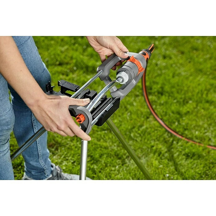 Het GARDENA Sproeierstatief verandert alle GARDENA cirkel-, zwenk-, nevel- en multisproeiers in hoogtesproeiers zodat je grotere planten gelijkmatig en van bovenaf kunt besproeien. De hoogte na montage is 50 cm en het statief heeft een snelkoppeling voor eenvoudig monteren – je hebt geen gereedschap nodig. De inklapbare statiefpoten zijn praktisch omdat het statief snel staat en weinig ruimte inneemt. De slanggeleiding voor ontlasting van de sproeier is geschikt voor alle slangen van 13 mm (1/2″), 16 mm (5/8″) en 19 mm (3/4″). Kleine hulp – groot verschil. Niet te gebruiken in combinatie met pulserende en turbinesproeiers: 8127, 8135, 8136, 8137 en 8141, 8143 en 8144.
