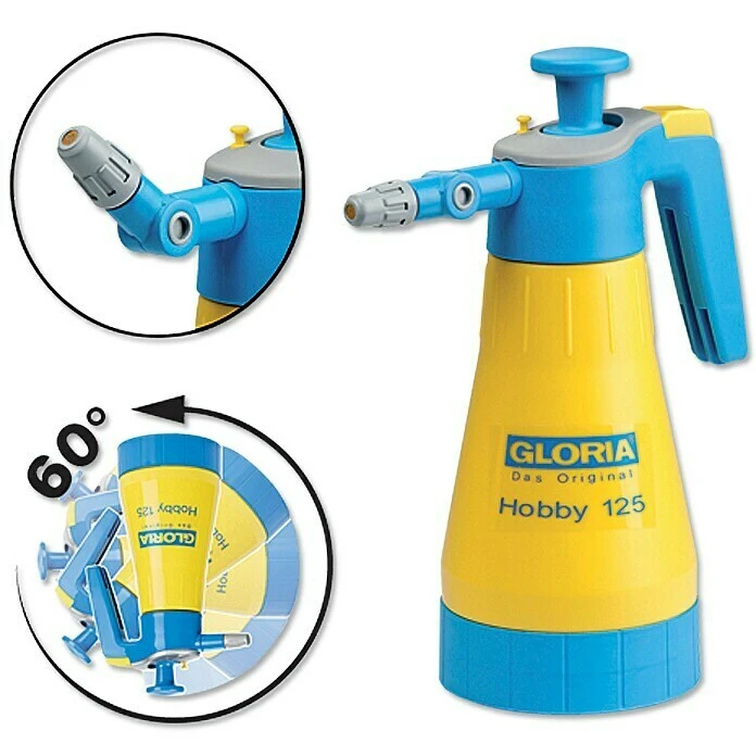 De Gloria druksproeier Hobby 125 met een nieuw, hoogwaardig design biedt dankzij de nieuwe ergonomische knop nog meer gebruiksgemak dan voorheen. De pompsproeier is uitgerust met een krachtige pomp, een overdrukventiel en een sproeier die 360 graden te draaien is. De 360°-sproeifunctie en de draaibare sproeikop zorgen voor maximale flexibiliteit. Een transparant venster toont het huidige vulniveau.