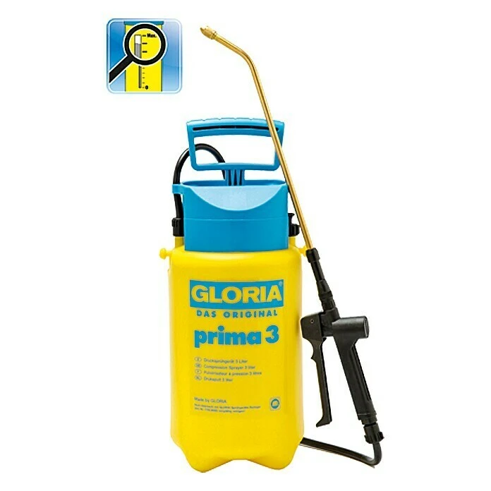 De Gloria druksproeier Prima 3 met een inhoud van 3 liter is je betrouwbare hulp bij het tuinieren. Hij is zeer compact en licht en levert een optimale druk en een perfect resultaat. Ideaal voor kleine en middelgrote tuinen. Het reservoir is voorzien van een transparant venster om het vloeistofniveau te controleren.