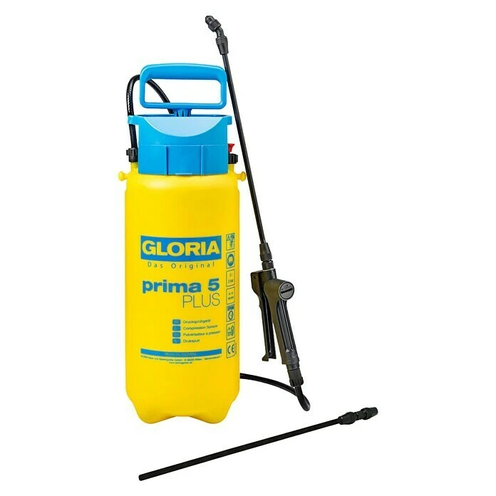 De nieuwe Gloria druksproeier Prima 5 Plus heeft dezelfde bouwwijze als de meest verkochte druksproeier van Gloria, de Prima 5. De Plus-versie is echter voorzien van hoogwaardige EPDM-afdichtingen en de spuitlans, sproeikop en verlengbuis van 0,5 m zijn van kunststof. Door dit pluspakket is deze druksproeier ideaal voor het aanbrengen van zure gewasbeschermingsmiddelen. Dit model is bestand tegen azijnzuur met een concentratie van maximaal 10%. Gloria raadt aan om alleen goedgekeurde en gebruiksklare azijnzuuroplossingen en gewasbeschermingsmiddelen aan te brengen met de Prima 5 Plus. Bovendien mogen deze gewasbeschermingsmiddelen alleen worden gebruikt op plaatsen die zijn bestemd voor land-, bos- of tuinbouw.