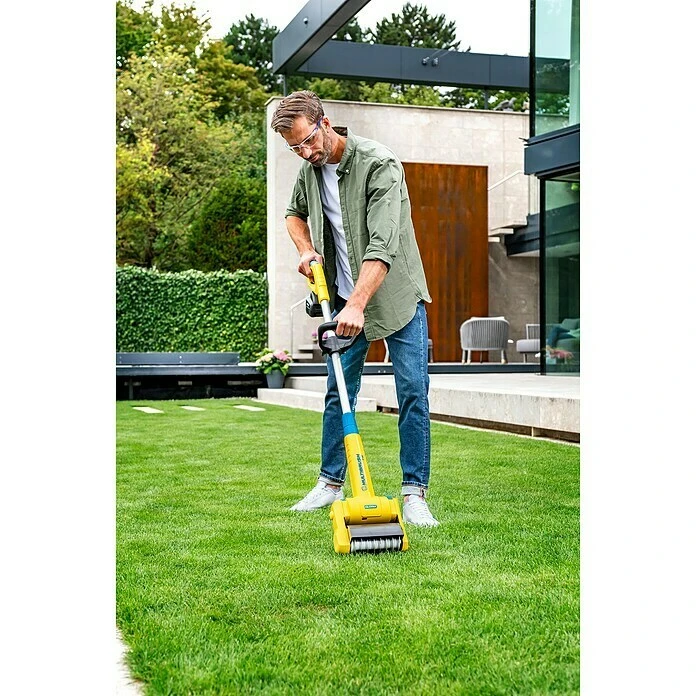 De 165 mm brede MultiBrush verticuteerwals past op alle MultiBrush units van Gloria en is ideaal voor het snel bewerken van kleinere gazons tot 100 m². Acht roestvrijstalen messchijven verwijderen gemakkelijk en doeltreffend dode plantenresten uit het gazon die anders de groei zouden belemmeren. Door het groen te bewerken met de verticuteerwals wordt de opname van voedingsstoffen in de bodem geoptimaliseerd. Het gazon groeit dicht op elkaar en wordt slijtvaster.