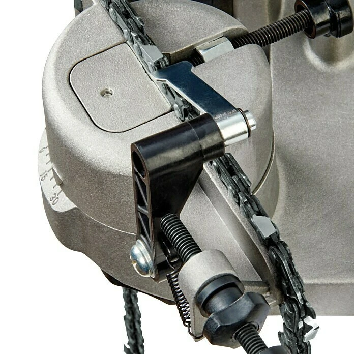 Met de Hurricane elektrische kettingzaagslijper HKSE 85/1 Kit kun je alle gangbare zaagkettingen perfect slijpen, want hij is voorzien van een draaibare kettingspanner met schaalverdeling voor het instellen van de slijphoek en een dieptebegrenzer. En met een vermogen van 85 watt is je zaagketting snel weer scherp. In plaats van een nieuwe ketting te kopen, kun je een gebruikte ketting heel gemakkelijk slijpen met deze uiterst stabiele machine. Deze elektrische kettingzaagslijper wordt inclusief slijpschijf geleverd.