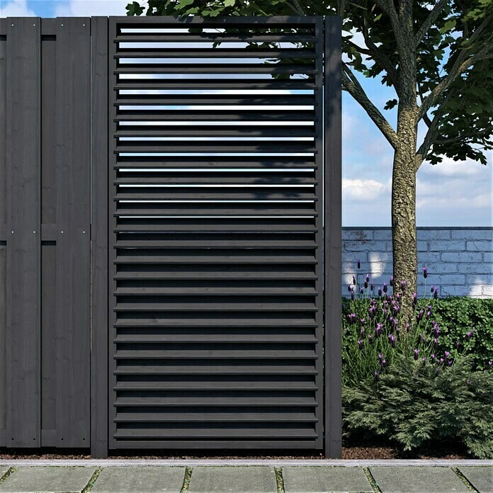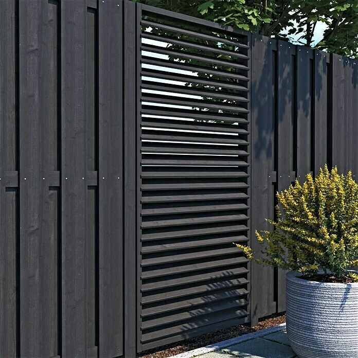 Het Jaloeziescherm in de kleur antraciet is gemaakt van meerdere lamellen (shutterscherm) en is gemaakt van geรฏmpregneerd geschaafd vuren hout. Door het impregneren van het hout is dit scherm beter beschermd tegen weersomstandigheden.