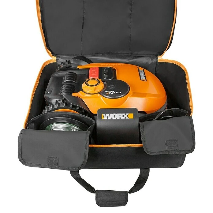 De Worx opbergtas WA0197 opbergtas is geschikt voor de Worx Landroid robotmaaiers S en M. In deze tas van slijtvast nylon kun je de maaier veilig opbergen en beschermen tegen vuil. Een kleine, met gaas afgewerkte opening zorgt voor optimale ventilatie. Met extra vakken aan de buiten- en binnenkant biedt deze tas op veel opbergruimte.